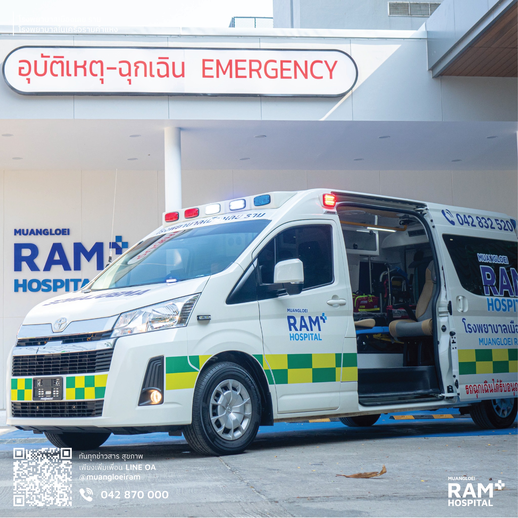 เพราะทุกวินาทีมีค่าสำหรับการรักษาชีวิต โรงพยาบาลเมืองเลย ราม พร้อมให้บริการรถพยาบาลฉุกเฉินมาตรฐานอเมริกา พร้อมทีมบุคลากรที่ผ่านการฝึกอบรมเข้มข้นเพื่อรับมือกับสถานการณ์วิกฤตอย่างมืออาชีพ