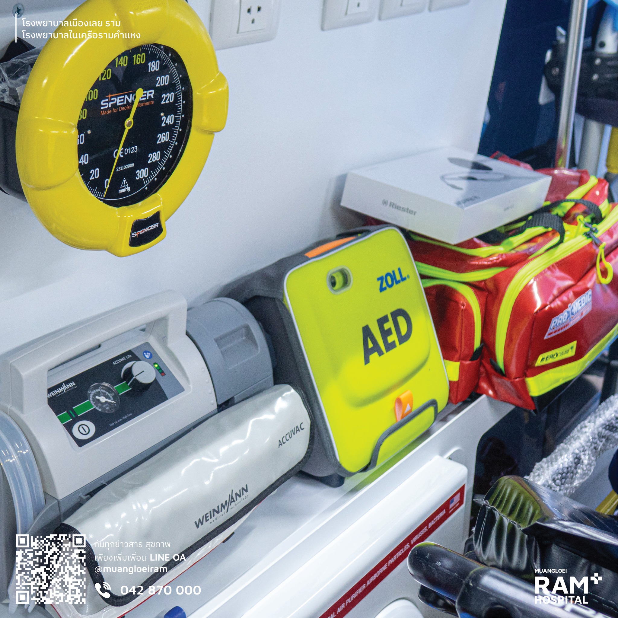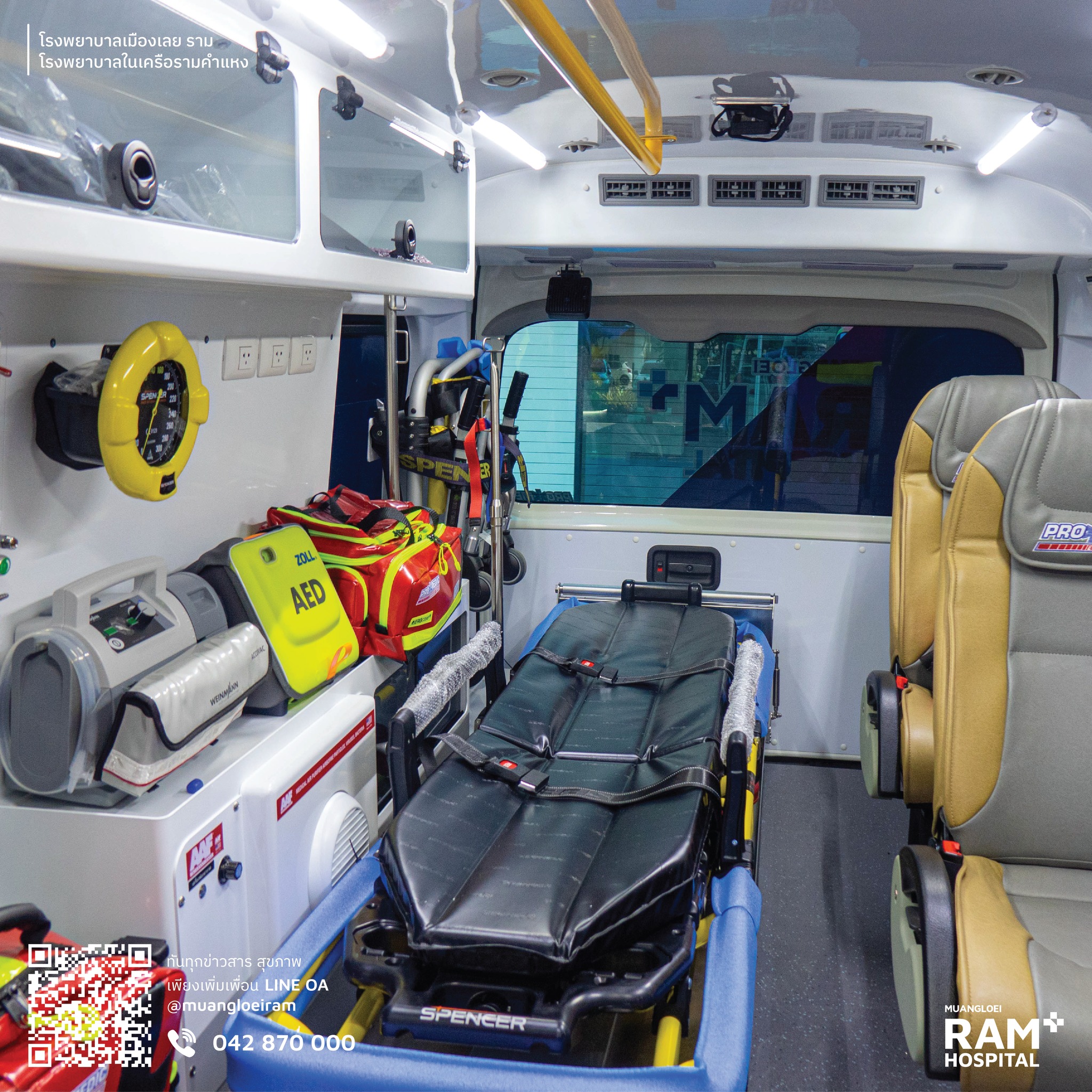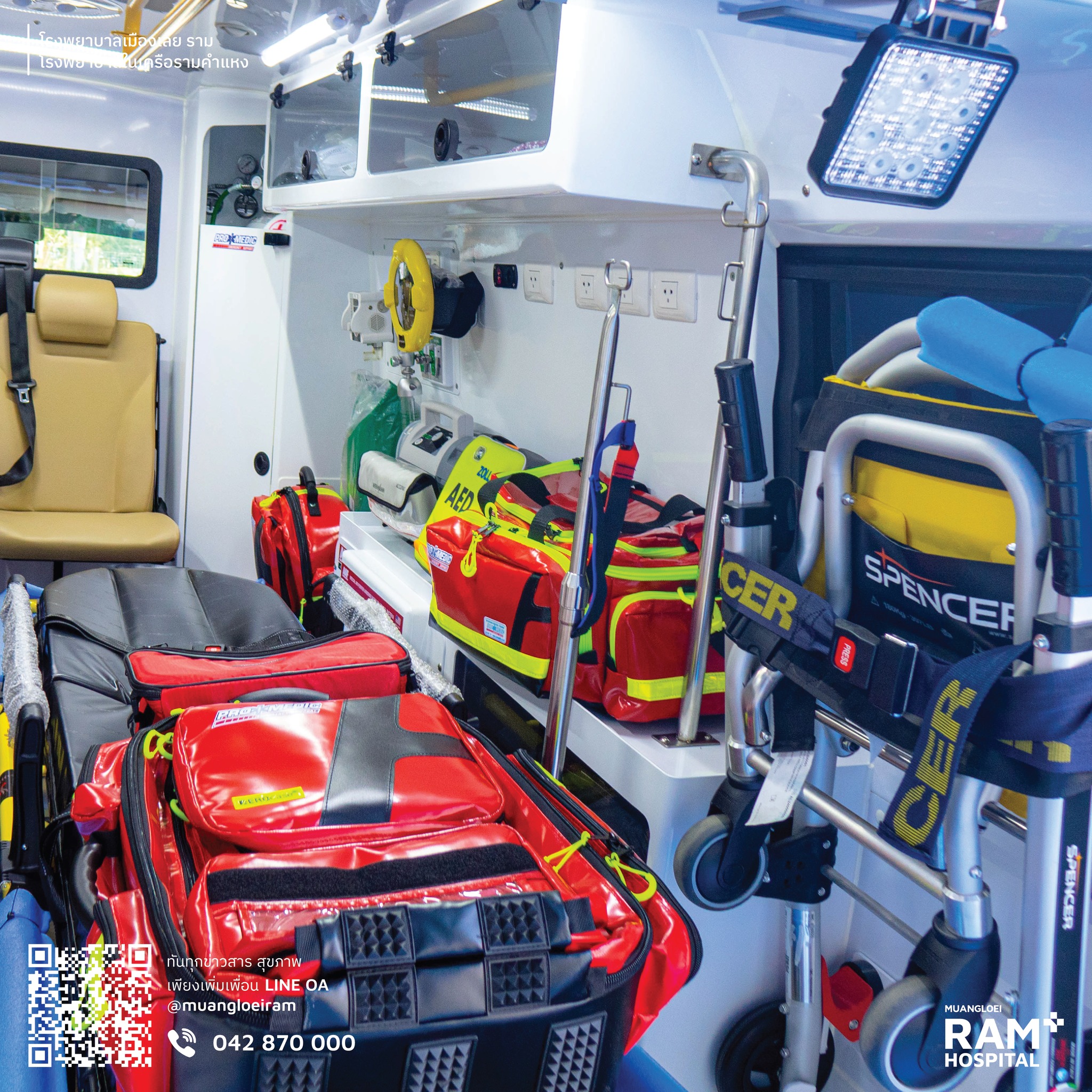 ✅ ครบครันด้วยอุปกรณ์ช่วยชีวิตระดับสูง ✅ ทีมแพทย์และพยาบาลฉุกเฉินผ่านการฝึกอบรมเข้มข้นตามมาตรฐานสากล ✅ ฝึกซ้อมสถานการณ์จำลองบนรถจริงอย่างสม่ำเสมอ ✅ อุปกรณ์ทุกชิ้นบนรถพร้อมใช้งาน 100% ในทุกวินาทีที่ได้รับแจ้ง